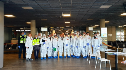 ?sismarkavus pandemijai Kauno rajono savanoriai ugniagesiai suskubo ? pagalb? Savivaldyb?s administracijai, kuri tur?jo skubiai suorganizuoti izoliuojam? asmen? pervežim? iš Kauno oro uosto.