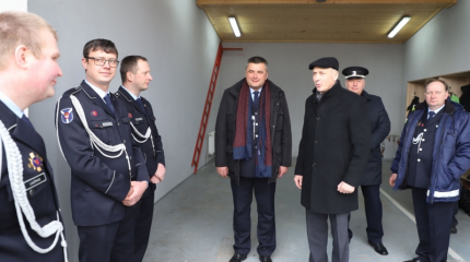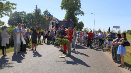Penktadien? Taurakiemio seni?nijoje (Kauno r.) ?vyko dviguba švent?: oficialiai atidarytas išasfaltuotas kelias Margininkai – Piliuona ir pašventintas naujas gaisrin?s pastatas.